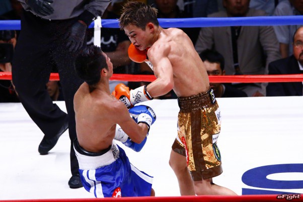 ホセ・アルグメド(左)に勝利し、国内最速世界王座戴冠 17年7月