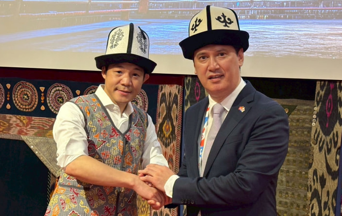 亀田興毅(左)が万博のキルギス共和国アンバサダーに!右はオソエフ大使