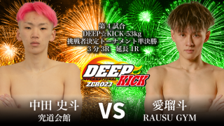 また第2部では、[DEEP☆KICK-53kg挑戦者決定トーナメント準決勝3分3R延長1R]で同級2位の中田史斗(究道会館)とK-1ファイターの愛瑠斗(RAUSU GYM)の顔合わせとなった。