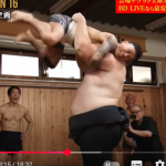 ボディブローを打たれていた把瑠都だが、パンチ連打の電車道でサッタリを吹っ飛ばす(『KAI Channel / 朝倉海』)