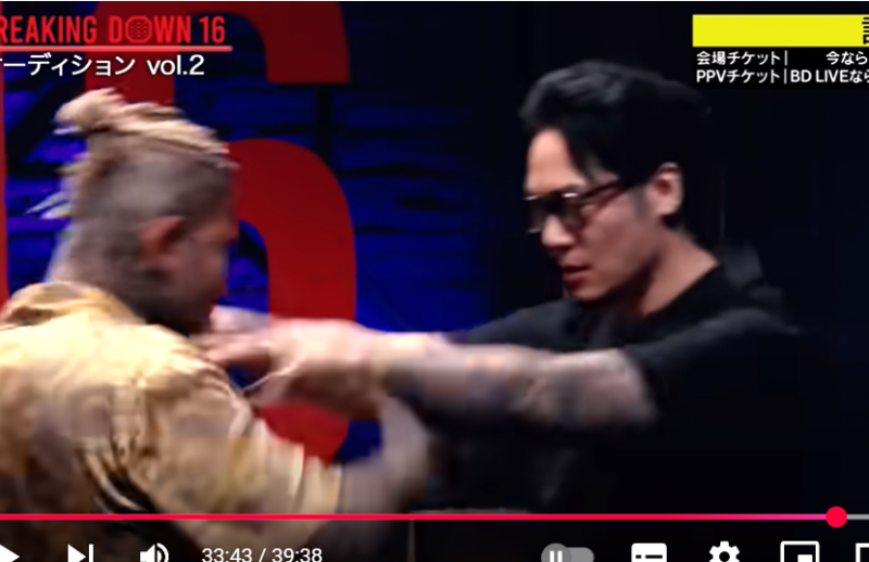 飯田はSATORUを弾き飛ばした(『朝倉未来YouTubeチャンネル』)