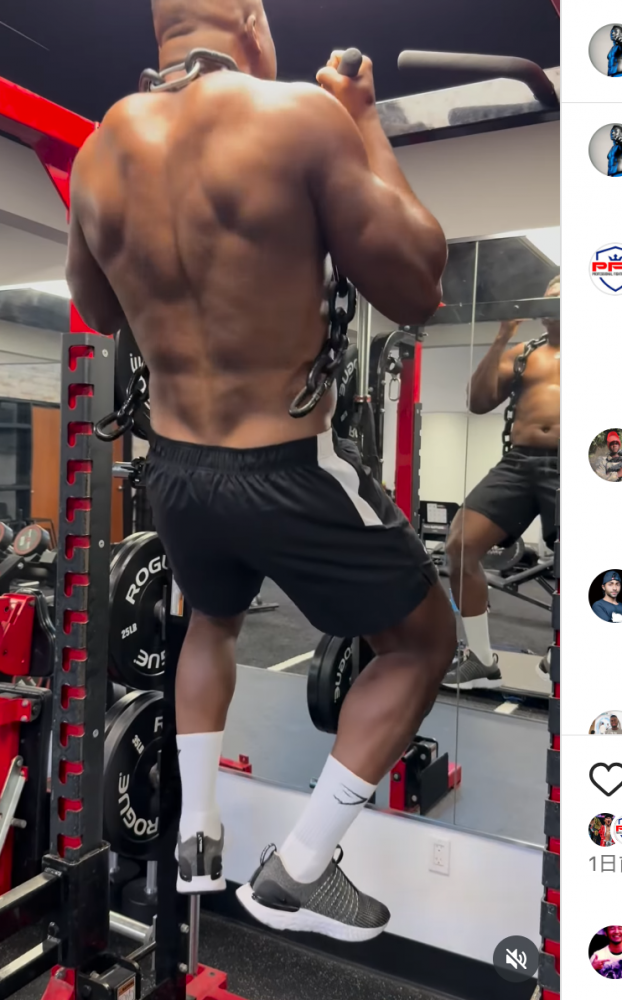 ガヌーが鉄の鎖を首にかけて懸垂@francisngannouより