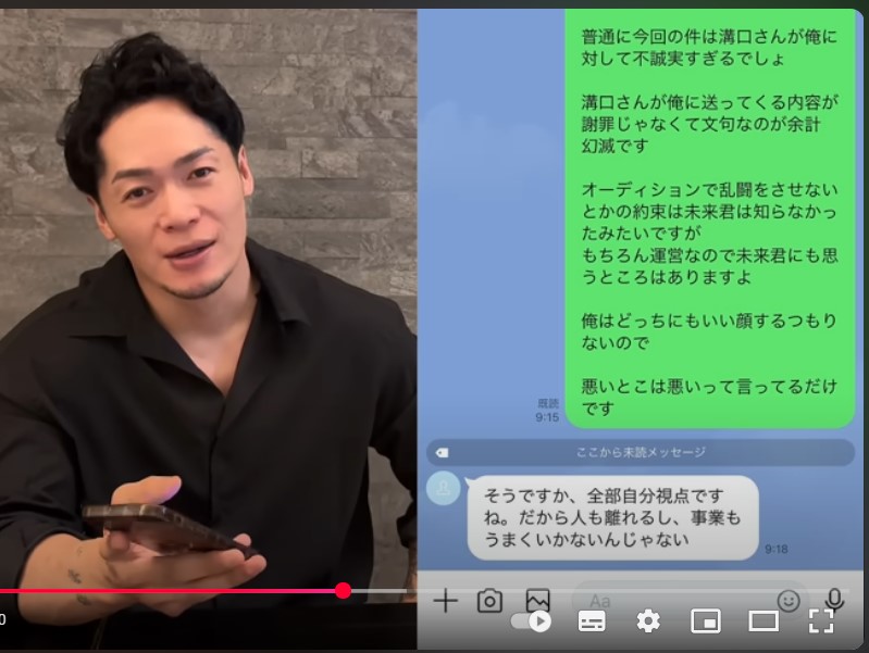 飯田は9日のYouTubeで溝口COOとのLINEのやり取りを公開(飯田将成YouTubeより)