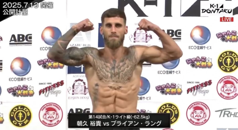 裕貴の対戦相手ラングの腹筋!くっきり割れている(K-1公式YouTubeより)