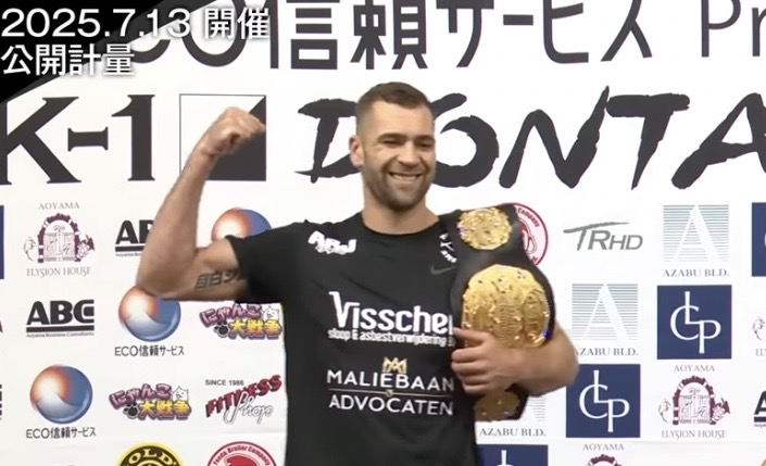 ヘビー級王者マナート、満面の笑顔(K-1公式YouTubeより)