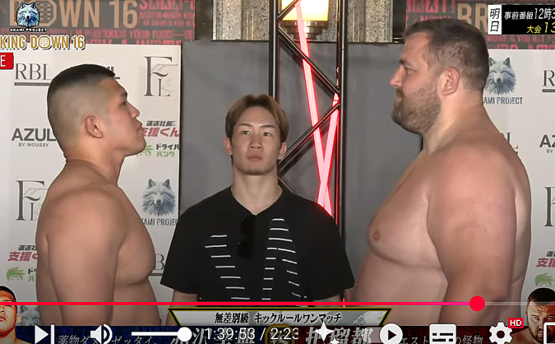 身長差は15cm、把瑠都が見下ろす(朝倉未来YouTubeより)