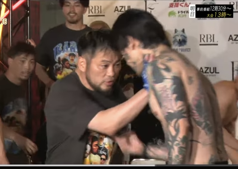 額を突き合わせる三河と瓜田(朝倉未来YouTubeより)