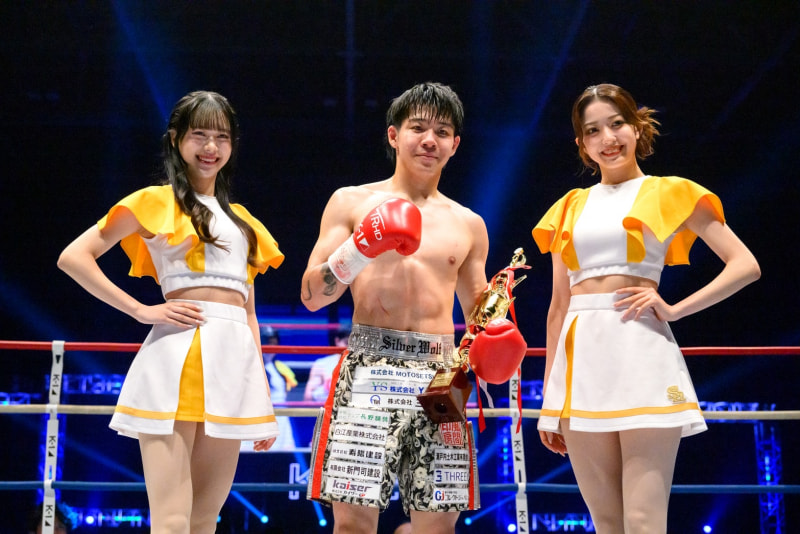 第2試合で勝利した長野翔と、みづき(左)、CO(右)(C)K-1