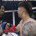 引退試合で戦った悪魔王子と笑顔で握手する瓜田
