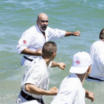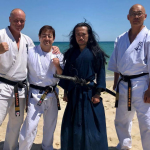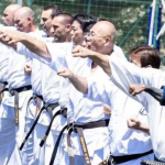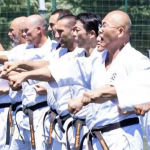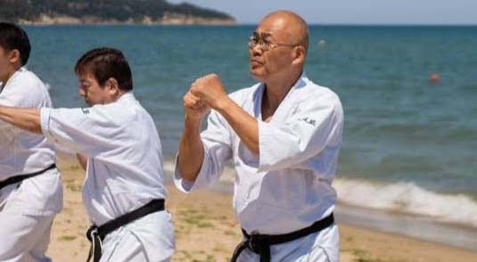 大道塾の長田賢一塾長(右)と加藤清尚師範が極真の稽古に参加 (c)KWUSENSHI