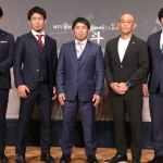 左からドコモ コンシューマサービスカンパニーの鈴木基久統括長、岡田、TBJ沖縄の松根第代表、修斗協会の佐藤ルミナ理事長、TBJの鶴屋浩代表