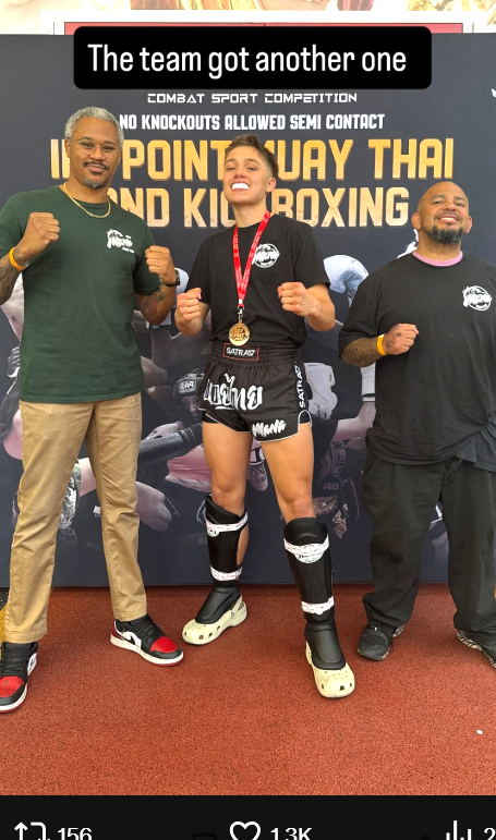 アマチュアムエタイで優勝したノックス(中央、@angeltresjolie_)
