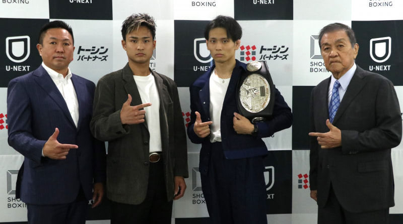 (左から)SB協会の緒形健一代表、笠原弘希、イモト・ボルケーノ、シーザー武志会長