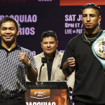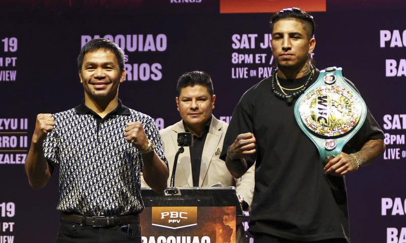 パッキャオ(左)がウェルター級世界王者バリオス(右)に挑戦(WOWOW/Getty Images)