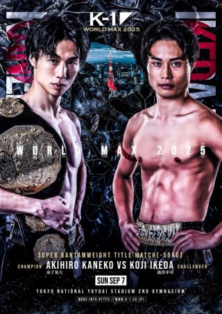 9月7日(日)東京・代々木第二体育館にて開催される『K-1 WORLD MAX 2025~-70kg世界最強決定トーナメント・開幕戦~』の対戦カードが発表された。[K-1 WORLD GPスーパー・バンタム級タイトルマッチ]として、金子晃大(王者/日本/K-1ジム自由ヶ丘/FROG GYM)vs池田幸司(挑戦者/日本/ReBORN経堂)が決定。5月大会の結果を受けてのダイレクトリマッチとなる。