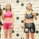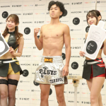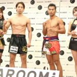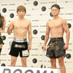 久井(左)は、ロムイーサン(右)へのリベンジへ気合いのボディを見せた