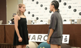 - 黒のワンピース姿のKiho、森川は編み込みヘアで会見に出席