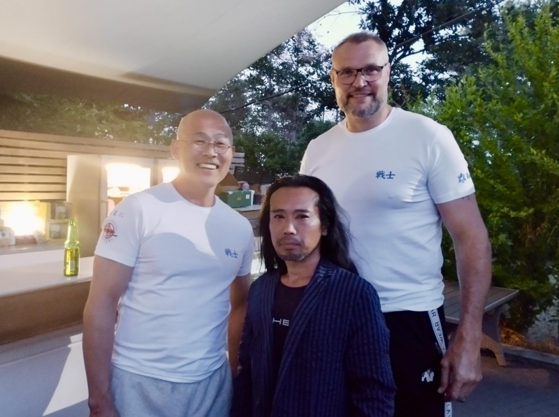 ブルガリア合宿に尾川師範(中央)を推薦した大道塾の長田賢一塾長(左)、右は元K-1王者セーム・シュルト