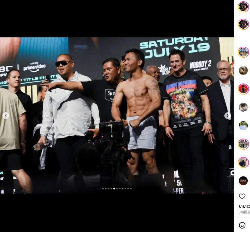 多くの関係者が集まる中、無事に計量パスしたパッキャオ(@mannypacquiao)