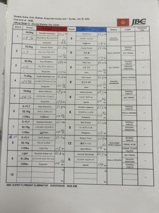 7月20日(日)にキルギスのビシュケク・アリーナで開催される『3150×LUSHBOMU vol.7 in キルギス』の前日計量が19日にキルギス市内で行われ、WBA世界スーパーフライ級挑戦者決定戦に出場する同級暫定王者デビッド・ヒメネス(33=コスタリカ)は52.1kgのスーパーフライ級リミットで、同級9位の健文トーレス(37=TMK)は鋼のようなバキバキの腹筋を見せ、200gアンダーの51.9kgでクリア。その他の出場選手を含め、全18選手が一発で計量をパスした。
