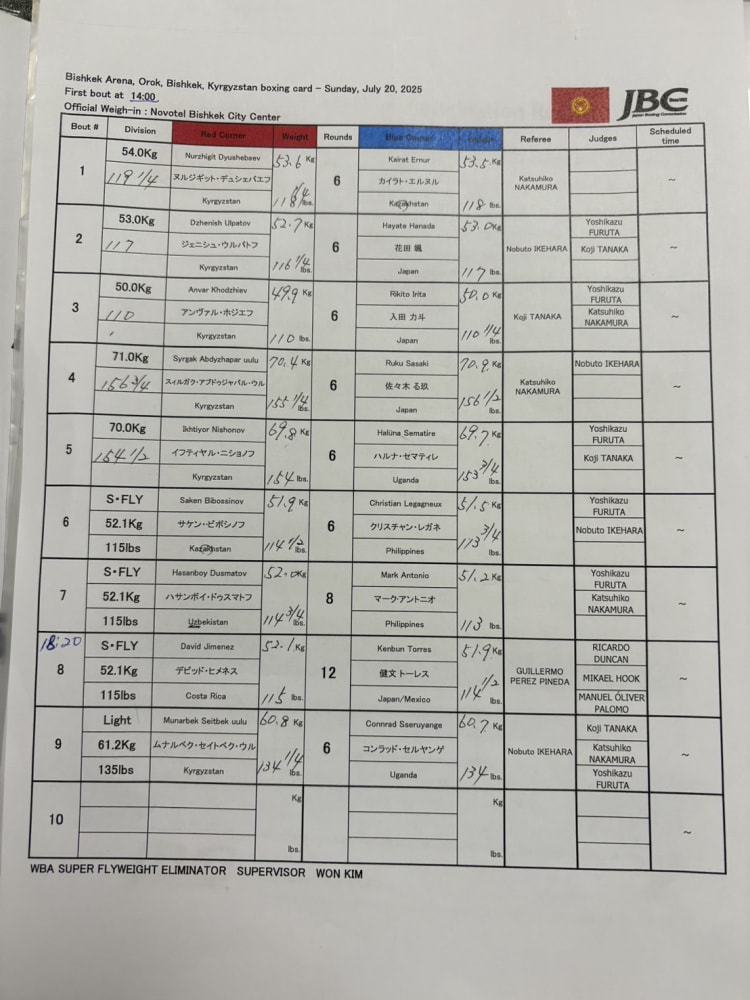 全選手の計量結果
