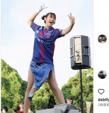 瓦割り女子アナがFC東に降臨!瓦11枚を一撃粉砕!風で「美しき脚が…」