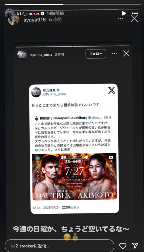 名乗りを上げた萩原の投稿(@k12_smoker)
