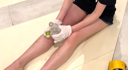 キックボクシングの練習で足が赤く腫れた百田のアップ(@shiori819)
