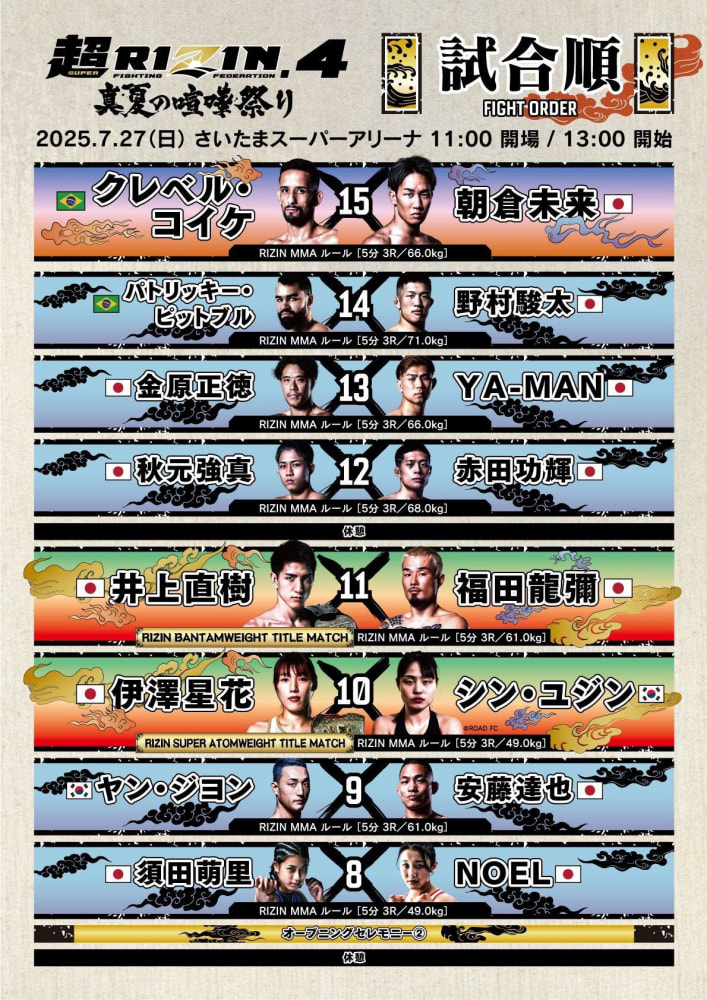 『超RIZIN.4』8試合目からメイン(15試合目)
