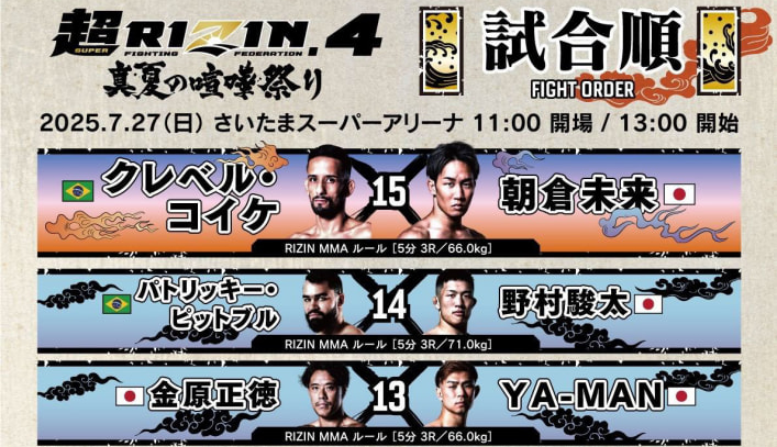 【RIZIN】神龍誠vsヒロヤ、ダウトベックvs久保優太など4カード追加決定=12.31[2025/12/4]