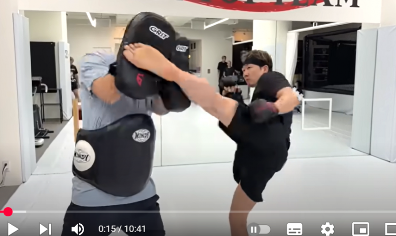 得意の蹴りを見せた朝倉(『ふわっとmikuruチャンネル』)