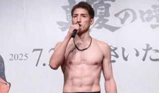 7月27日(日)さいたまスーパーアリーナで開催される『超RIZIN.4 真夏の喧嘩祭り』の前日計量が、26日に都内にて行われた。[RIZIN MMAルール:バンタム級タイトルマッチ5分3R(61.0kg)]に出場する王者・井上直樹(Kill Cliff FC)が60.95kg、挑戦者の福田龍彌(MIBURO)が60.95kgでともに計量パスし、6パック腹筋を見せた。