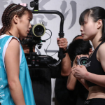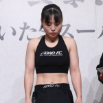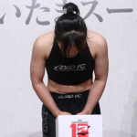 伊澤(左)はシン・ユジン(右)の850gオーバーに怒りの表情(『RIZINオフィシャルYouTubeチャンネル』)
