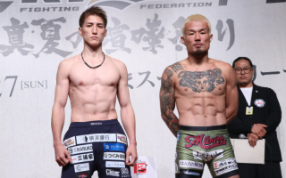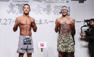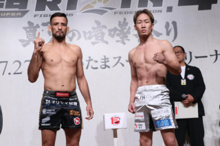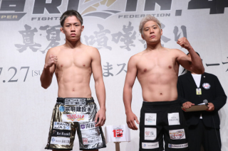 7月27日(日)さいたまスーパーアリーナにて開催される『超RIZIN.4 真夏の喧嘩祭り』の前日計量が、26日に都内で行われ、メインイベント(第15試合)のクレベル・コイケ(ブラジル/ボンサイ柔術)と朝倉未来(JAPAN TOP TEAM)、セミファイナル(第14試合)のパトリッキー・ピットブル(ブラジル/ピットブル・ブラザーズ)と野村駿太(BRAVE)らが計量をパスした。