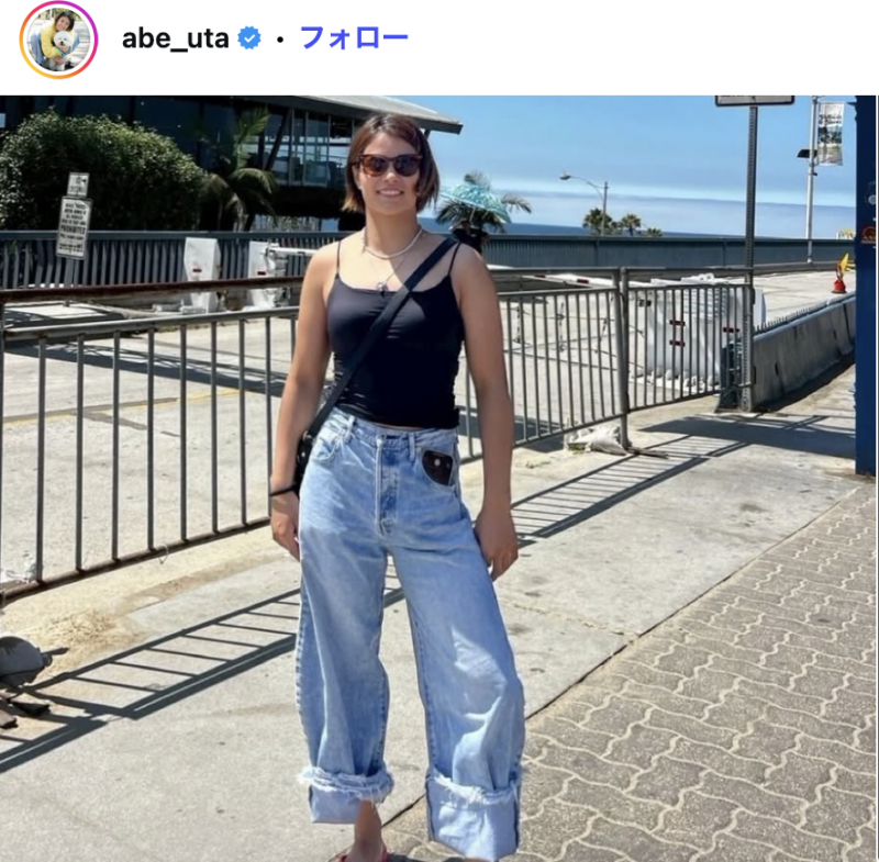 阿部詩、サンタモニカのビーチでキャミソール姿!7.26 @abe_uta より