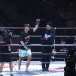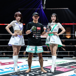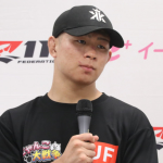 金原のタックルにYA-MANが右アッパーを合わせダウンを奪う。そのままパウンドに