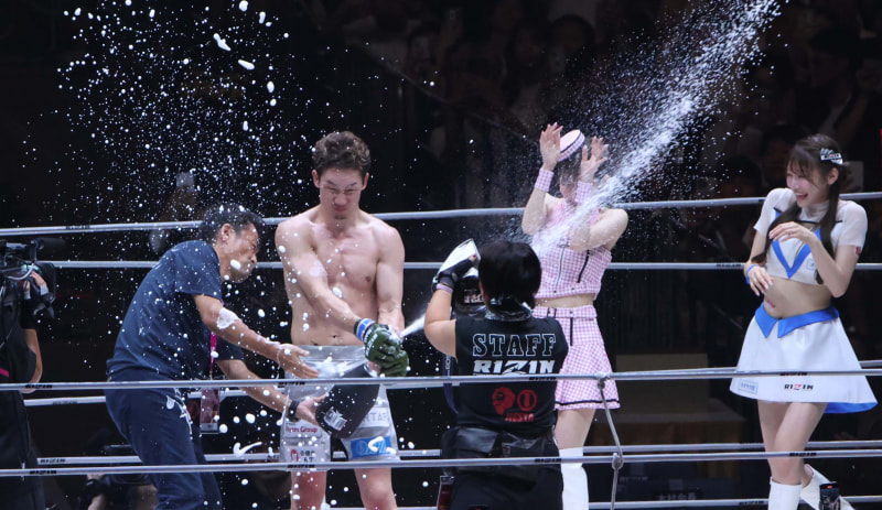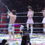 朝倉未来のシャンパンがラウンドガールに向け噴出!