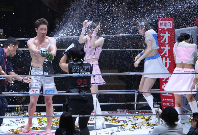シャンパンで濡れた!?逃げ回るラウンドガールら