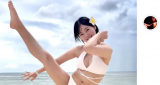 【フォト&動画】彼女の“むっちり”全身ビキニ姿! 浜辺でハイキックも