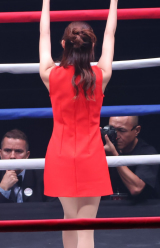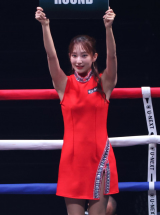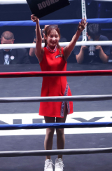 ボクシング戦で目を引く美形ラウンドガールは空手黒帯だった!太腿でファン魅了