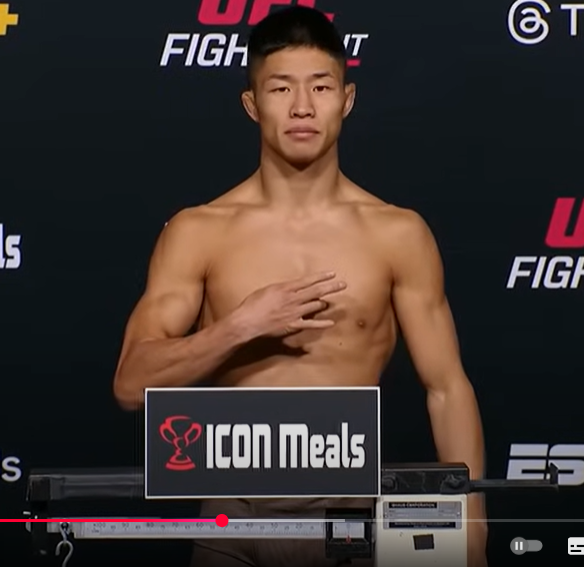 中村が胸に右手を当て、引き締まった表情(UFC公式Youtube)
