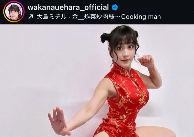 上原わかな、チャイナ服でポーズ!(@wakanauehara_officialより)