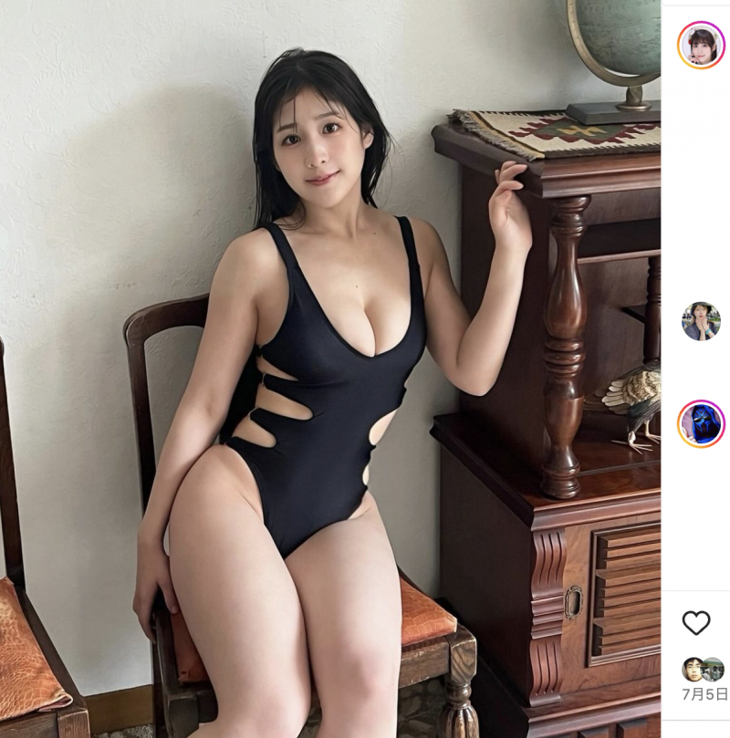 上原わかな、際どい黒水着姿(C)田畑竜三郎/ヤンマガWeb▶︎ヤンマガページへ