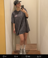 - 汗で濡れたTシャツで朝トレ後の姿(高橋凛Xより)