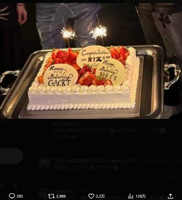 GACKTと朝倉の誕生日、朝倉のRIZIN勝利を祝ったサプライズケーキ(@GACKT)