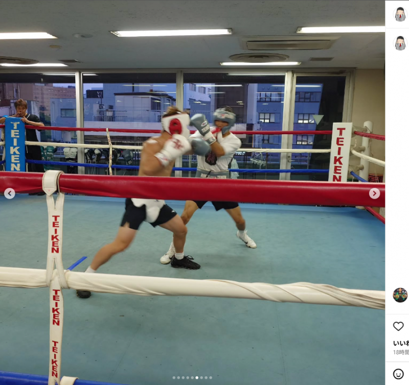 出稽古先の帝拳ボクシングジムでスパーリングを行う井上(左)(大橋ジム提供)