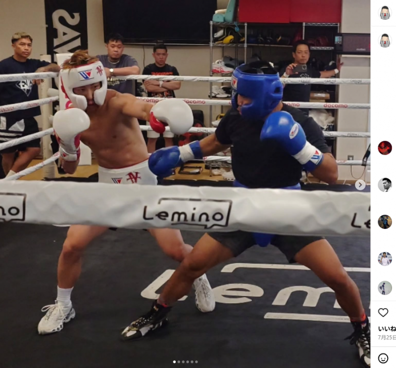 先月25日に公開されたタパレス(右)と井上(左)のスパーリングの様子(大橋ジム提供)