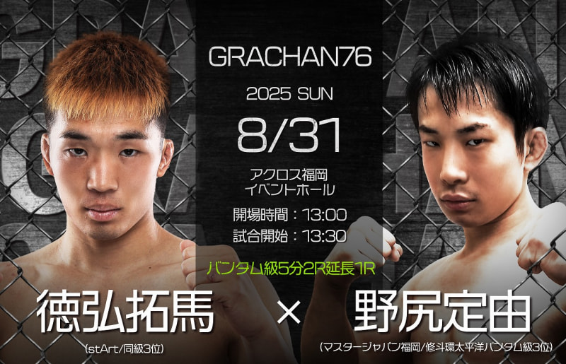GRACHANトップランカーの徳弘拓馬(左)と修斗環太平洋バンタム級3位・野尻定由(右)が激突