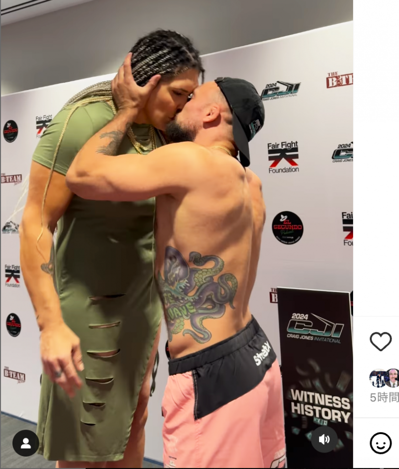試合前にジョーンズにキスされてしまうギャビ@craigjonesbjjより