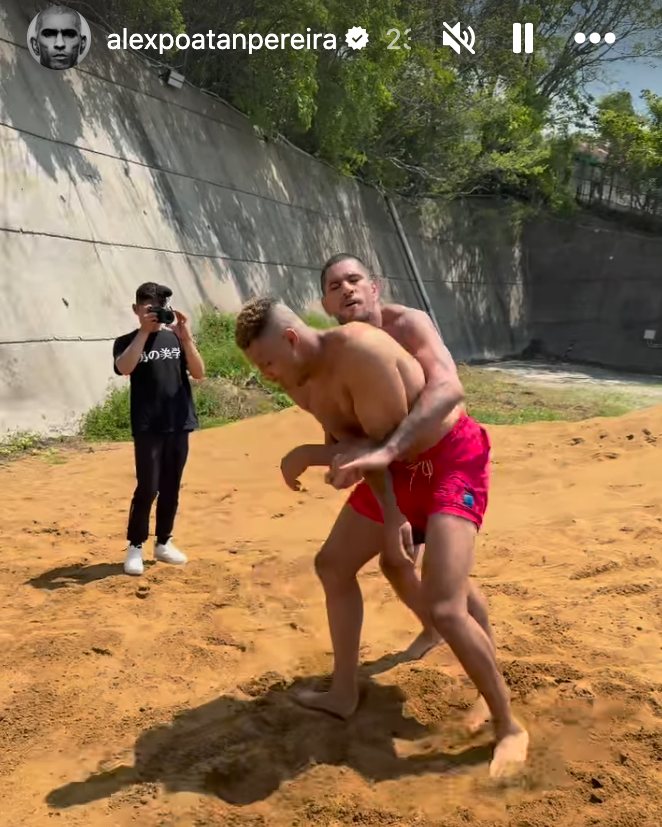 ペレイラとエドポロキングが砂場でスタンドの組み@alexpoatanpereiraより